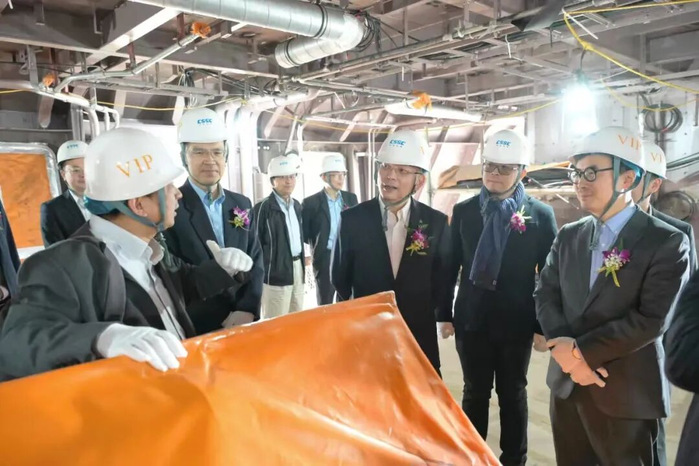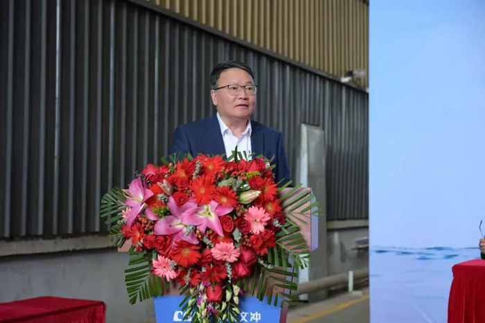 中国船舶集团黄埔文冲船舶有限公司总经理罗兵代表承建方致欢迎辞,中国船舶集团所属中国舰船研究设计中心所长卢晓晖代表设计方致辞,上海佳船工程监理发展有限公司总经理邱亮亮代表监理方致辞,共同表示,将继续以高度的责任感投入精干力量,高质量组织完成后续工作任务,有力支持我国海洋事业发展。