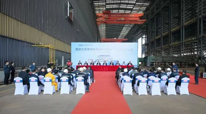 方守恩表示,船对于同济人来说有着特殊的意义,同济校徽上的核心图案是一条三人划桨的龙舟。科考船不仅是同济师生践行海洋强国战略的重要装备保障,也将成为传承弘扬同济精神、同济文化的重要载体。希望相关各方继续秉持团结协作、精益求精的精神,按时推进工作计划,严把质量关,合力打造精品,确保科考船高标准交付使用。期待“同济”号承载海洋强国梦想,为同济海洋学科人才培养、科学研究开启新篇章,作出新贡献。