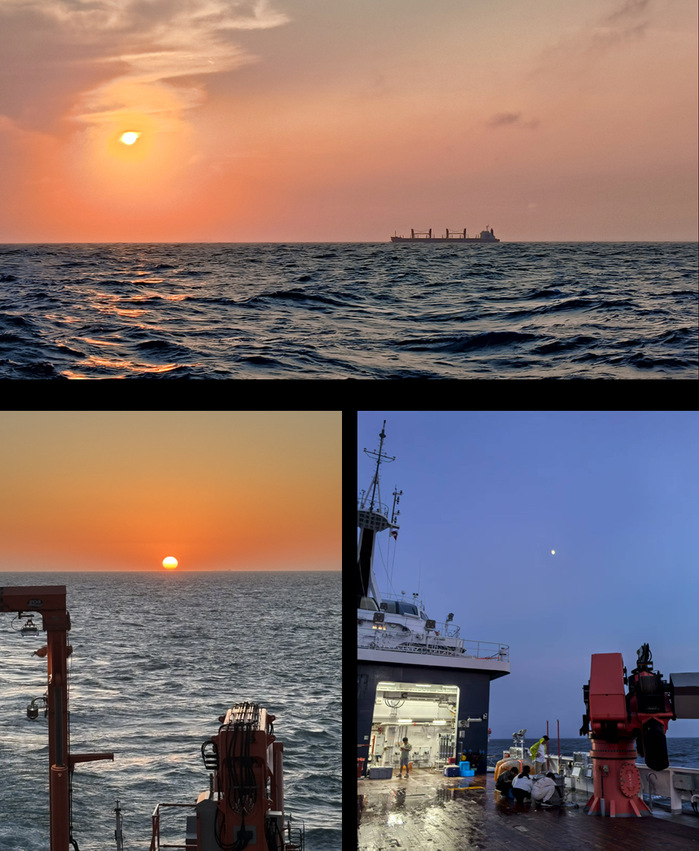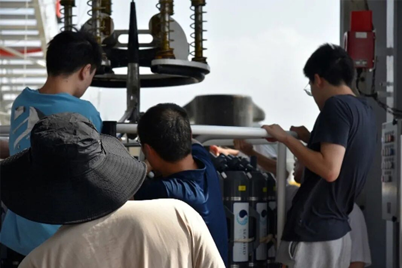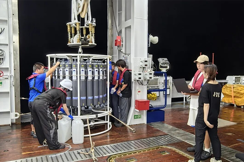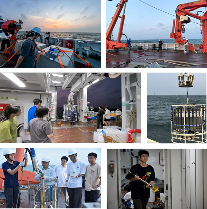 第一、二航段执行过程中分别受到第7号台风范斯高和第8号台风竹节草外围强风和涌浪的影响,除了29号因东海海域台风预警而在锚地避风外,其它时间在安全得到保障前提下,全体船员与科考人员熟练配合,基本保证每次作业的高成功率。参加过往年实习航次的老师和研究生助理均表示,“同济”号科考船的平衡稳定性、仪器操作平台的高性能和实验探测部老师的丰富经验等是采样成功率近100%的重要保障,站位调查目标完成率也达到90%以上。如果是租用其它高校或民营的较小吨位科考船,受强台风浪影响,作业成功率和站位目标完成率都会大打折扣。
