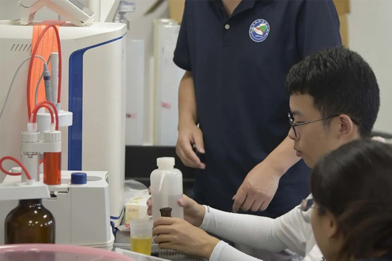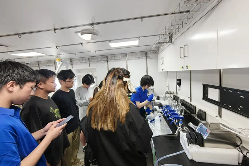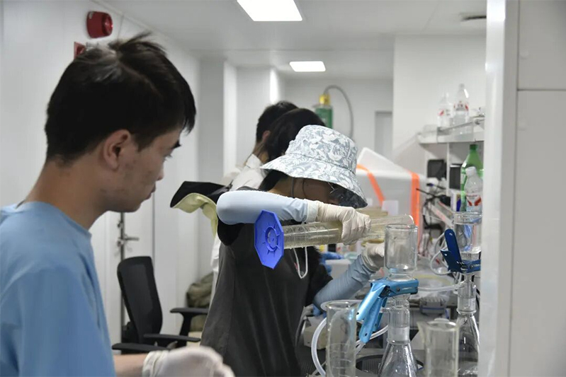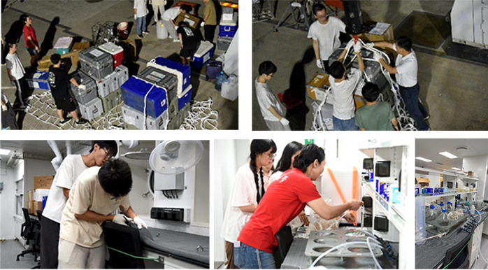初次出海的同学们感触很深,首先是为有幸参加“同济”号科考首航的海洋综合实习而兴奋骄傲,但对部分晕船严重的同学也是巨大意志考验。黄伟捷同学坦言:“上同济号是圆了我的海洋梦!”尽管因晕船他一天未进食,却还是在同伴的帮助下坚持完成了海洋化学检测任务,他感慨道“闻到食物就想吐,但看到数据出来的那一刻,觉得一切都值了”。刘家硕等同学在晕船呕吐的情况下,仍坚持操作仪器、观察样本,让课本上的硅藻和砂岩在显微镜下有了温度。何悠、金祺晏等同学自觉参与夜班的全程值班,并协助其他同学进行采样。
