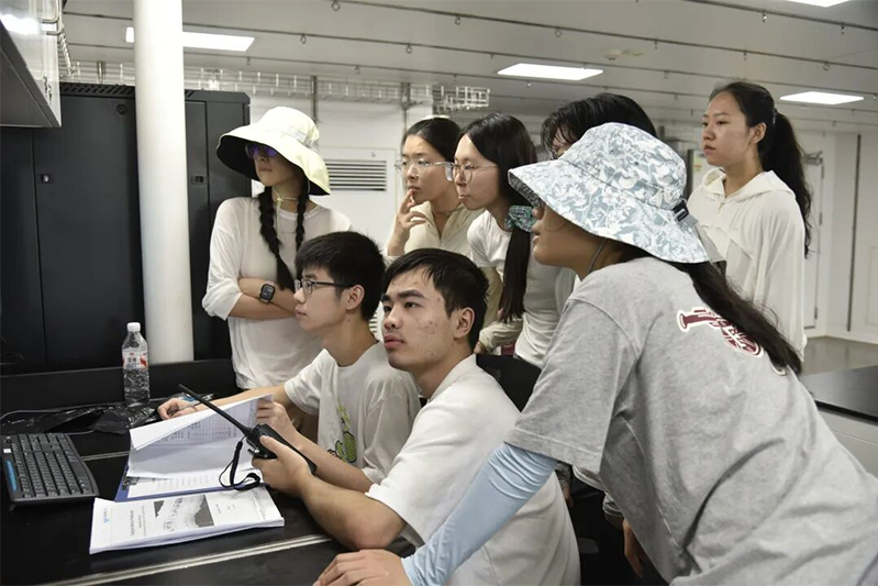 每个航段13名本科生分成两组,按海洋地质、海洋地球物理、物理海洋、海洋化学和海洋生物等5个方向轮流进行专业仪器操作、观测与采样、实验分析与描述等全过程培训,再根据个人兴趣选择其中一个方向进行深入的实际仪器操作、采样分析与数据解释等研究性实习,并在此基础上最终完成实习报告和答辩。