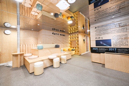 配备了钢琴与倚墙而立的书架,有效拓展了展陈空间与娱乐属性,可供数十余人在此阅读、弹奏音乐或轻松交谈,灵活支持多种休闲场景。为科考人员的互动和交流提供便利条件。