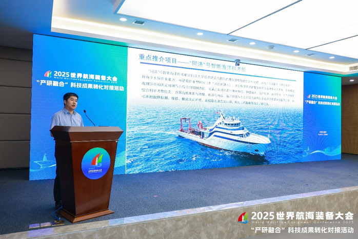 同济大学船舶管理中心主任拓守廷,重点推介了学校在海洋装备与工程智能领域的多项前沿科技成果,包括同济号智能海洋科考船、海底设施自主巡检机器海鳗和超深水海底飞行节点地震仪等具有代表性的创新项目。拓守廷在介绍中指出,“同济”号智能海洋科考船集智能化、绿色化、模块化与人性化于一体,代表了未来船舶发展的前沿方向。他强调,该船所搭载的先进科考设备具备广阔的推广应用前景,亟需通过与企业的深度合作,推动其实现产业化落地。此次在世界航海装备大会参展中,同济大学已与多家企业达成初步合作意向,成效显著,为后续产学研协同创新奠定了坚实基础。