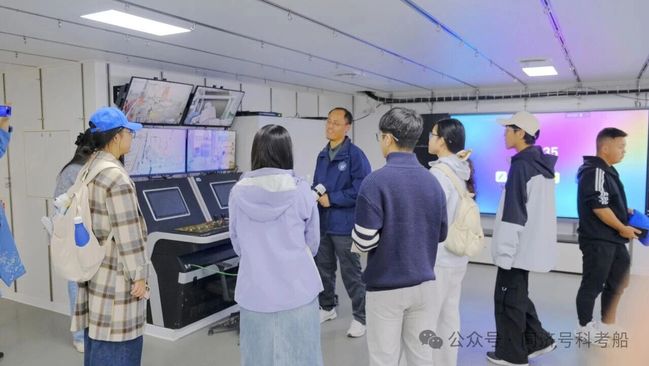 欢迎仪式后,师生代表们怀着兴奋与好奇的心情,在船员的引导下有序登船参观。大家依次走访了驾驶室、实验室、甲板作业区等关键部位,亲身感受了“同济”号先进的船舶设计、智能化的操控系统以及功能齐备的科研实验空间。讲解团队和工作人员现场为师生们讲解了船只的各项性能参数、科考装备的功能以及在以往航次中的典型应用案例。师生们认真聆听,并不时就感兴趣的问题与专家进行交流探讨,现场互动气氛活跃。